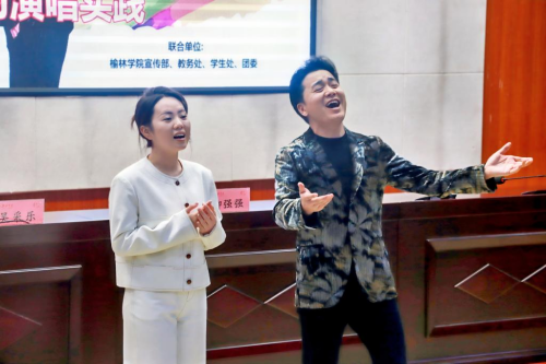 3月28日下午,由万象城allwincity官方网站入口陕北民歌学院与五乐育人学院联合主办的第二期陕北民歌公开课——《陕北民歌的演唱与实践》在逸夫楼报告厅举行。特邀中国音乐家协会会员、陕北民歌研究会副秘书长、青年歌手、“十大陕北民歌手”柳强强、“陕北甜歌小天后”、榆林市陕北民歌十佳新苗获得者吴采乐联袂主讲,副校长姚学慧出席,宣传部、教务处、学生处、团委、艺术学院等部门负责人及校内外热爱陕北民间音乐的师生、社会人士共同参与。为师生和音乐爱好者带来了一场兼具实践性与艺术性的民歌盛宴。