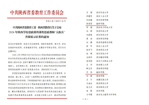 教育教学改革研究取得新突破。学校不断深化教育教学改革,优化课程设置,创新教学方法,提高教学质量。学校启动了‘青年教师培优工程’,旨在提升教师队伍的学历水平,特别鼓励40岁以下的青年教师积极攻读博士学位。同时,学校还通过项目合作、柔性引进等方式引进紧缺的高层次人才,为教育教学改革提供了有力支持。学校荣获省级高等教育教学成果奖特等奖1项、二等奖1项,基础教育教学成果奖一等奖4项、二等奖1项;12门课程被认定为省级第三批一流本科课程,8门课程被推荐参评国家级一流课程;获批省级课程思政精品课程和教学团队8门。获批全国“大思政课”优质资源建设推介精品项目1项、习近平新时代中国特色社会主义思想“三进”省级精品思政课程项目1项、省级实验教学和教学实验室建设研究项目1项。在陕西省新时代教育评价改革案例评选中,2项获典型优秀案例。1名教师荣获全国优秀教师称号,10余名老师在陕西省高校青年教师教学比赛、思政课教师“大练兵”展示活动等获奖。这些辉煌成果的取得,无不凝聚着全体教师辛勤的汗水与卓越的智慧,它们犹如璀璨星辰,标志着我院在教学改革与创新的征途上迈出了铿锵有力的步伐。
