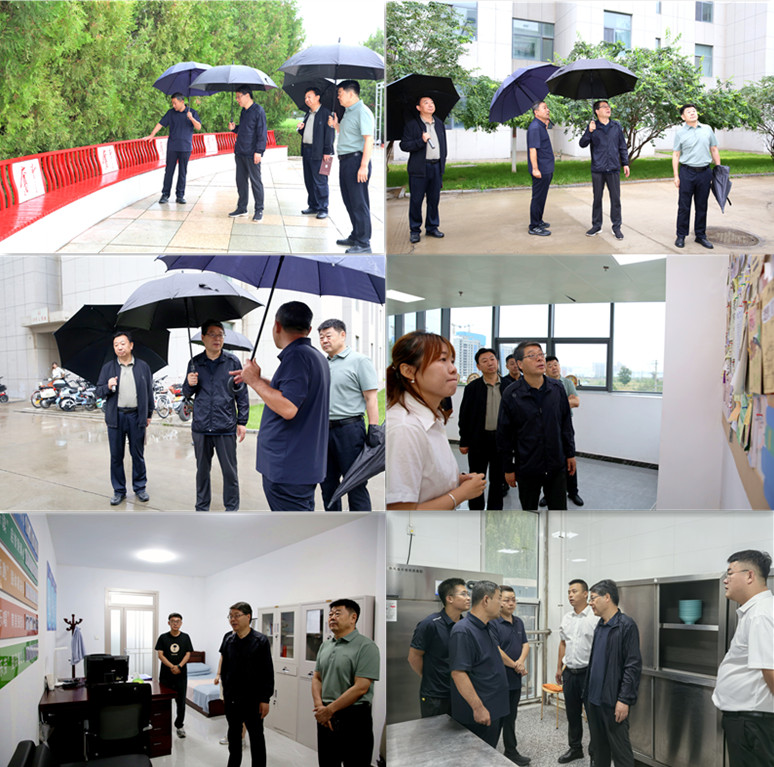 8月26日,党委书记张新柱带队深入学校重点区域,检查校园安全稳定工作,全面开展安全隐患排查,确保新生报到平稳有序。党委副书记马亚军,副校长姚学慧参加调研。