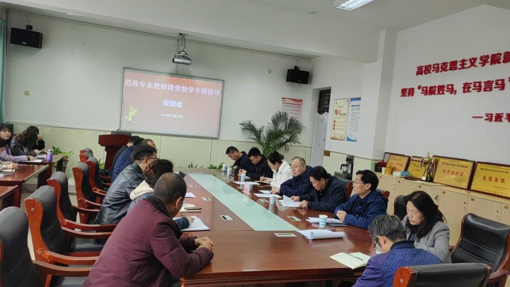 10月23日上午,思政专业教师课堂教学专项督导反馈会在六号教学楼6406会议室举行,党委副书记闫龙出席,教务处、质评办相关负责人以及课堂教学专项督导专家和马克思主义全体教师参加会议。